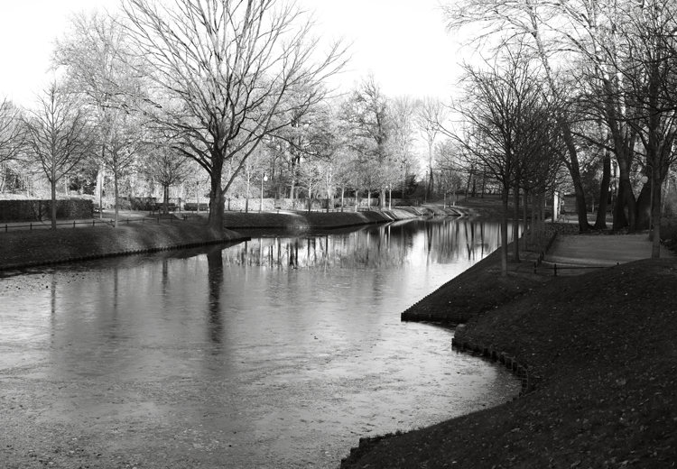 Goldfischteich (Goldfish Pond) is ancient. First appearing in 1757 as a sunken field of stark geometric shape becoming a small water reservoir called Venussbassin. It is then enlarged and deepened by P. J. Lenné to help the flow, after he plans a network of streams through the Tiergarten. P. J. Lenné drafts many variations where the Venussbassin disappears and reappears as a pond of loose contours or as an ornate square basin, with a statuary Venus overlooking the water, lovingly. Later the pond contains rare varieties of goldfish, a present from Russian royals, and the name changes into Goldfischteich. During the 19th century mania for heroic monuments, manly to the core, the Venus is taken away, substituted with the “Musikerdenkmal” (Musicians’ Monument), massive and golden, nicknamed by the general public with “The Stove”.