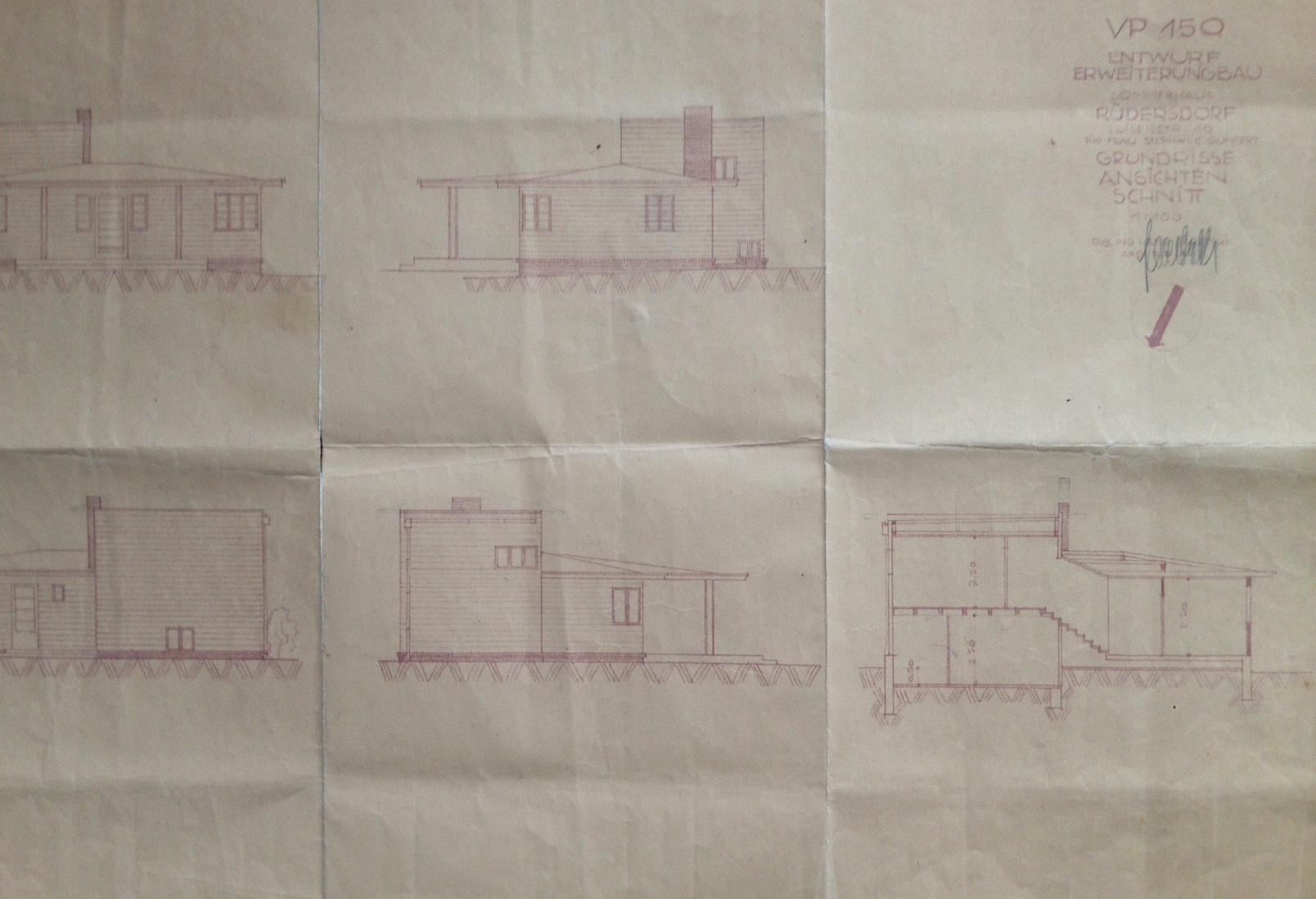 Ich weiss nicht, ob Hans Sigmund Jaretzki 1931 ein Model des Hauses für Stephanie Gumpert gebaut hat. Einen Bauplan habe ich, von ihm unterzeichnet und datiert; Berlin, 28. Juli 1931. Abgeheftet, gefaltet in einer Klarsichthülle, im Ordner Haus.