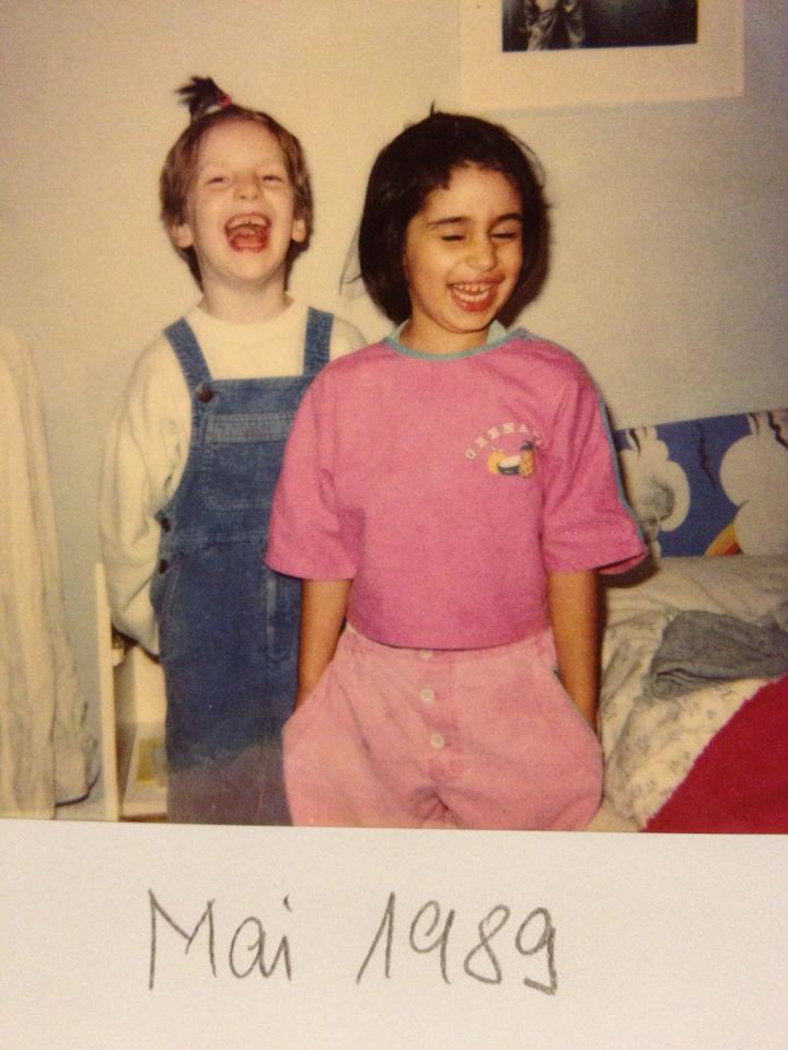 I met you when I was four and you were five. The first time I saw you was in the hallway of our building. You were living with your mom on the ground floor. I was about to move in with my mom on the top floor. Soon we would spend everyday together in kindergarten, in school, after school, on weekends. Our walks home from our Schülerladen (with the great name of “Zornige Zwerge” and located in the Spontivilla) felt like days, sometimes walking backwards, playing schwarzer Mini, pinching each other, chasing through the streets and all seasons. You tied my shoes until I finally learned to do it myself. We learned riding the bicycle together. We also had the bad experience with this man on the street and we swore to don’t tell anyone until we finally did. I slept over some time, your mother was collecting dolls, later she would win a car. It’s ben a lifetime I haven’t seen you and today you sent me this. A pearl of past times.