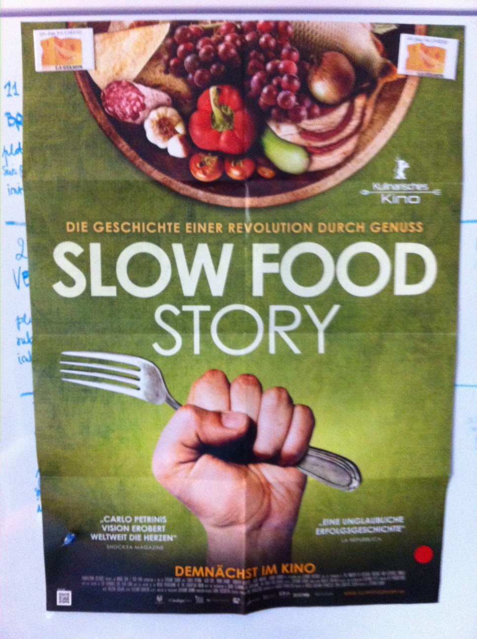 Ok I know I have to finish my list of short reviews of recommended Italian films but now I have to recommend another film… Mine! My documentary SLOW FOOD STORY is out in cinemas in Germany right now. So leave your computer, turn facebook off, get out of the warm house and face the cold out the there to go to the cinema, please. It’s a documentary, and it’s italian: it NEEDS help. Your help. So come on. I want you to show me the receipt, afterwards. I count on you, each of you: don’t let me down.
