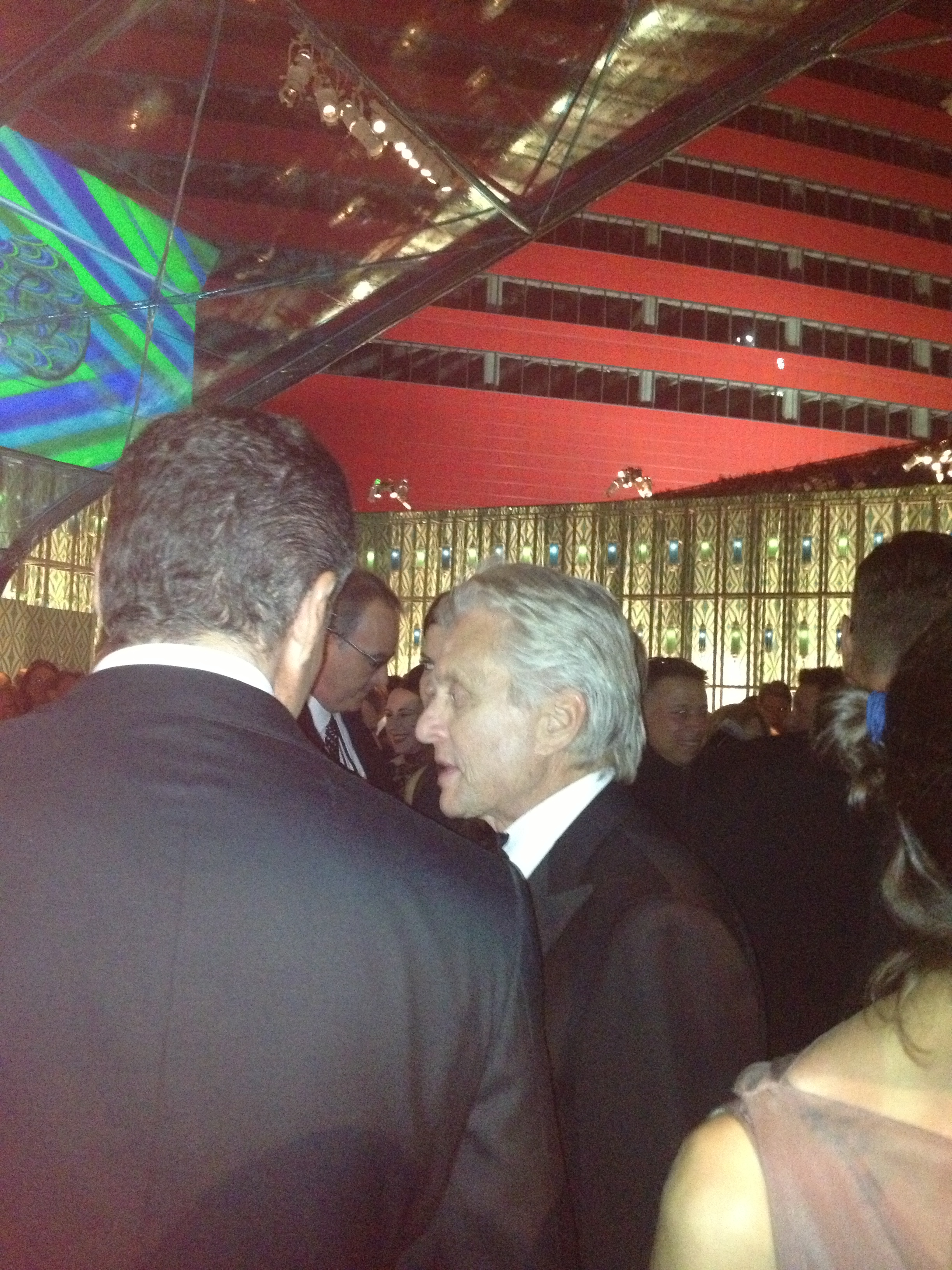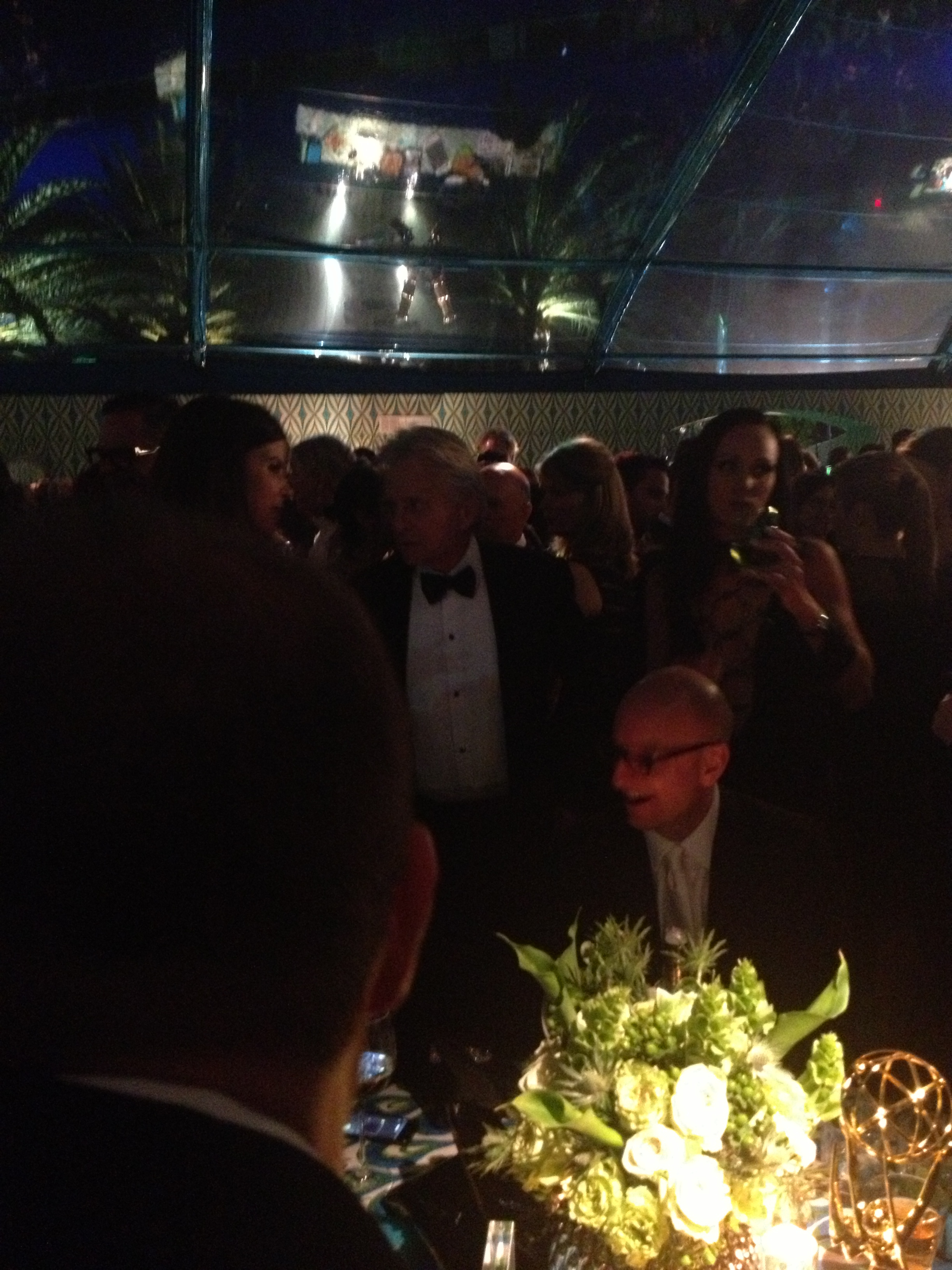 Last night we went to party with HBO. Amazing party room, everything was done in peacock feather colour. Interior designer Billy Butchkavitz knows, that Hollywood does NOT appreciate any kind of understatement. HBO won, big time, Jeff Daniels ran around like a crazy person, as he got the Emmy for “Newsroom”, Jane Fonda appeared in a see through dress looking hotter than girls 30 years younger than her. (Still the Aerobic body and she plays in “Newsroom” too) Mick Jagger stayed only for 15 Minutes, but never mind. Everybody tried to get to the Soberbergh table, where Steven and Michael Douglas and Matt Damon celebrated winning the Emmy for “Behind the Candelabra”, the gay drama, the life of Liberace, played by Michael Douglas. (Half naked with wigs on.) Back to the table: Douglas was shy. He tried his best, he made two russian girls happy, as they could take a picture with him. But then he disappeared, running away from the iPhone-picture-army, who tried to catch him. The man of the moment was Mr. Soderbergh. Sleek, skinny, shaved head. Looking good, like a cool fox who survived everything so far. He was NOT in the mood to talk about TV. “It was a looong day. I can’t talk right now and you really want to make me work?” Mr. Soderbergh said as I asked him to answer my questions about TV, but of course Mr. Soderbergh was flattered at the same time, that someone would ask him questions about the future of TV even while partying and he was not REALLY mad at me, he just played being mad. Besides, I was NOT the only one. There was a line of 20 men, in black suits behind me, that had tons of theories and questions about TV, that Mr. Soderbergh was supposed to answer for them. So last night, people came to the Soderbergh table like they would visit a psychic. Or a fortune teller. Steven, what is the future of Hollywood? Of TV ? Of God? Of the world? Mr. Soderbergh made it clear: the future wouldn’t be THE MOVIE anymore and then he drank another glass.